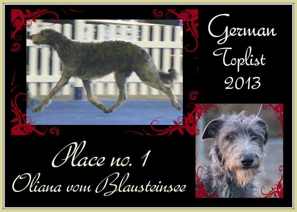 Juhu...! Mein Olianchen hat's gemacht! Ich freue mich sehr über den 1. Platz in der Deutschen Deerhound Topliste für das Jahr 2013!