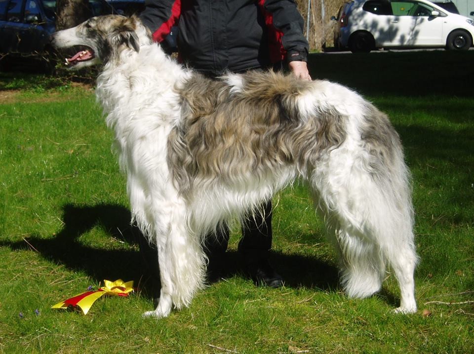CAC Erkrath/Hochdahl: Heute wurde nur unser Mariechen von den Barsois ausgestellt. Sie gefiel der Richterin Frau Krah-Heiermann aus Deutschland sehr gut, aber leider ist Mariechen nicht ganz klar gelaufen, so dass es ein "V4" gab-jedoch dennoch eine gute Platzierung, worüber wir uns überaus freuen bei so großer Konkurrenz!