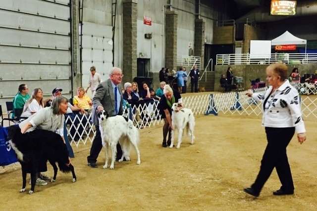 Dorogoi von Alshamina today first time in junior class Exc1, BM-3, rec.CAC! 27 borzois were entered!!! Congratulation to whole family Saatsi in Finland! Donna-Maechen is so proud on her big brother! :-)