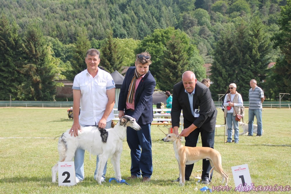 We are overwhelmed, happy and mega proud on our pretty borzoi girl! After this successful show weekend Dasha von Alshamina (ATJr.Ch., HUJr.Ch., HRJr.Ch) also still fulfilled the conditions to the title "Slovakian Junior Champion"!!! The single results and more photos you find HERE on Dasha's side! We say: "Heartly congratulations to whole family Miksch in Austria! Thank you, you make it happened- the Dasha mouse absolutely is worth it! :-)